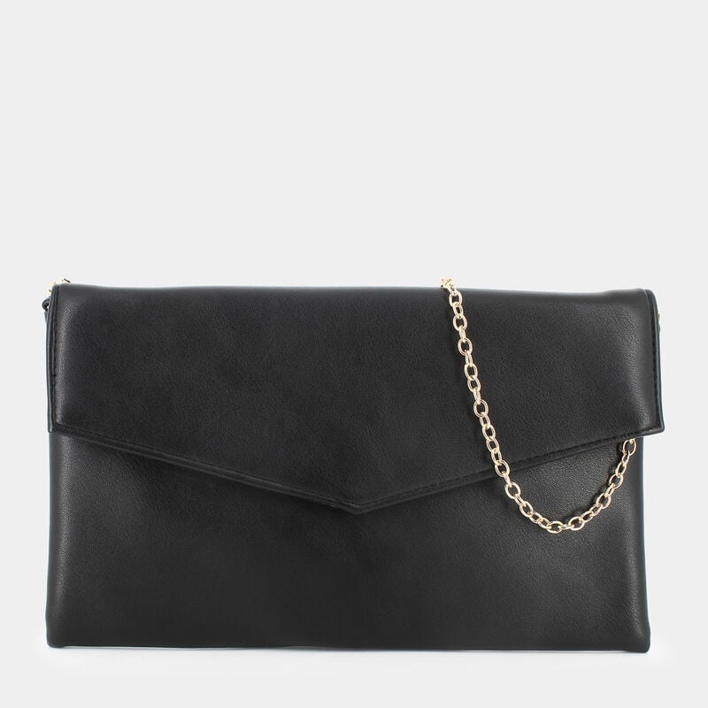 Sempre del marchio Sheen, puoi completare il tuo outfit con la clutch nera: una soluzione perfetta che combina praticità e stile e con un tocco di luce donato dalla catena chic, che si armonizza anche con i gli abbinamenti più casual.